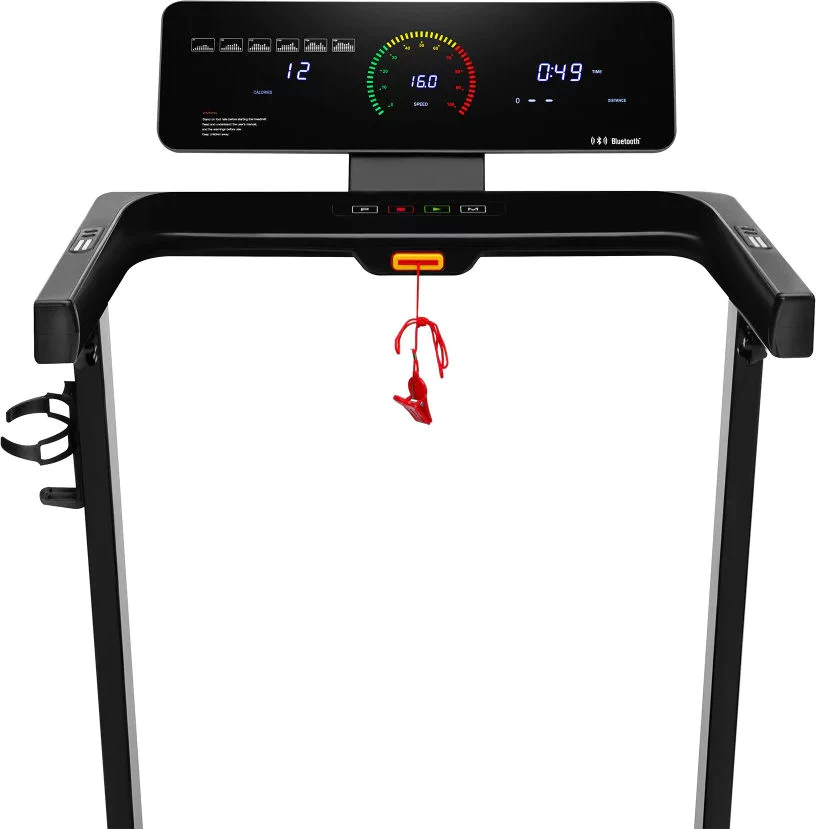 Wbudowany moduł Bluetooth oraz głośnik umożliwiają słuchanie ulubionej muzyki, co z pewnością umili każdą sesję biegową. Możliwość korzystania z popularnych aplikacji takich jak Kinomap, Zwift czy AnyRun pozwala na jeszcze pełniejsze doświadczenia biegowe, łącząc wysiłek fizyczny z technologią. Z uwagi na wysokie standardy jakości i bezpieczeństwa, bieżnia spełnia oczekiwania większości użytkowników. Maksymalne obciążenie do 100 kg czyni ją odpowiednią dla szerokiego grona użytkowników, a solidna konstrukcja zapewnia trwałość na lata. Klucz bezpieczeństwa to dodatkowa funkcja, która zwiększa pewność podczas treningu, zatrzymując bieżnię w razie potrzeby.