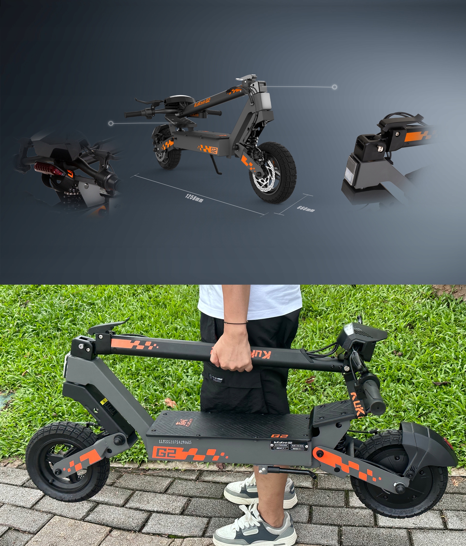 Zapewniając wytrzymałość i stabilność nadwozia, KuKirin G2 optymalizuje materiały i konstrukcję, utrzymując masę netto produktu na poziomie około 26 kg. Produkt jest łatwy w przenoszeniu i przechowywaniu, a jego kompaktowe wymiary po złożeniu sprawiają, że jest bardzo wygodny w dojazdach do pracy i z powrotem lub do umieszczenia w bagażniku pojazdu.