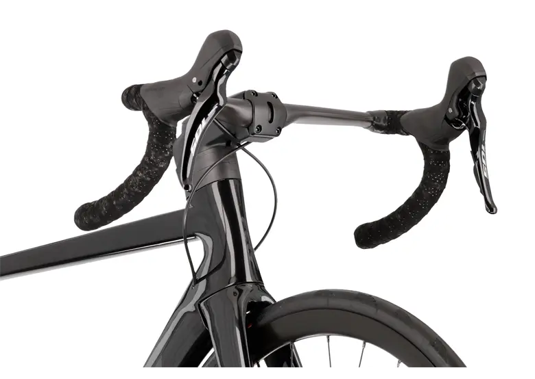 Semi-zintegrowany kokpit Felt z kierownicą Devox DBar.C0 Aero to połączenie estetyki i funkcjonalności. Całość dopełnia mostek Felt Sprint (-6°). Takie zestawienie umożliwia precyzyjne dopasowanie pozycji.