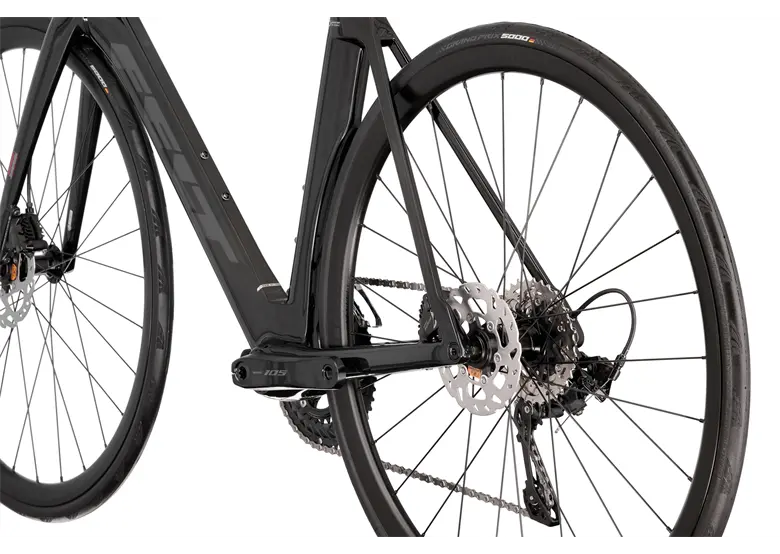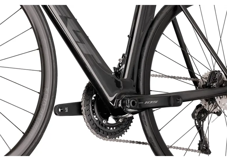 Napęd Shimano 105 w konfiguracji 2×12 oferuje szeroki zakres przełożeń, zapewniając płynność i kontrolę w każdej sytuacji. Trwałość i niezawodność Shimano 105 sprawiają, że ten napęd jest gotowy na intensywne treningi i zacięte wyścigi.