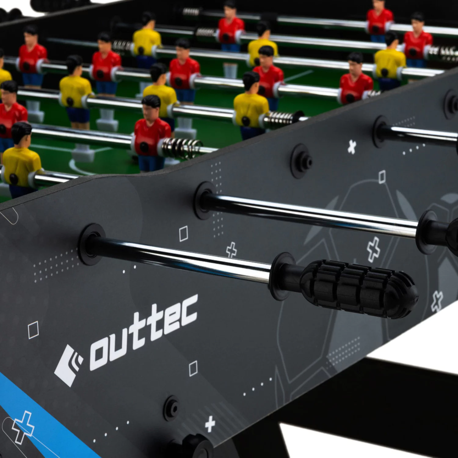 Piłkarzyki Beta Outtec to świetna propozycja dla każdego, kto ceni aktywną i pełną emocji rozrywkę — doskonałe zarówno na rodzinne wieczory, jak i towarzyskie spotkania. Stół wyróżnia się solidną, stabilną konstrukcją, która sprawdza się nawet podczas najbardziej intensywnych meczów. Prowadnice o niskim oporze i wygodne uchwyty zapewniają płynność i pełną kontrolę nad grą, co przekłada się na jeszcze większą satysfakcję z każdej rozgrywki. Nowoczesny wygląd sprawia, że stół świetnie wpisuje się w różne aranżacje wnętrz, a system Easy Fold pozwala na szybki montaż i wygodne przechowywanie w pionie.