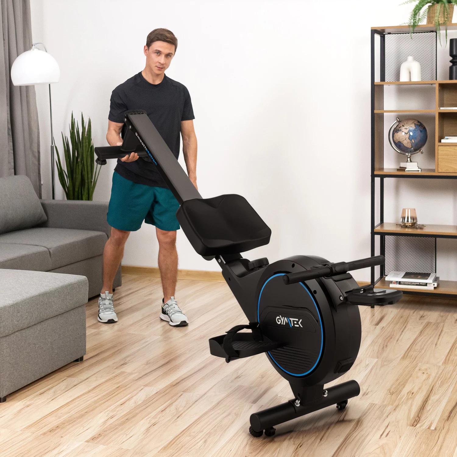 - Łatwe przemieszczanie: Wbudowane rolki transportowe umożliwiają szybkie i bezwysiłkowe przesunięcie wioślarza w dowolne miejsce – bez potrzeby podnoszenia czy demontażu.